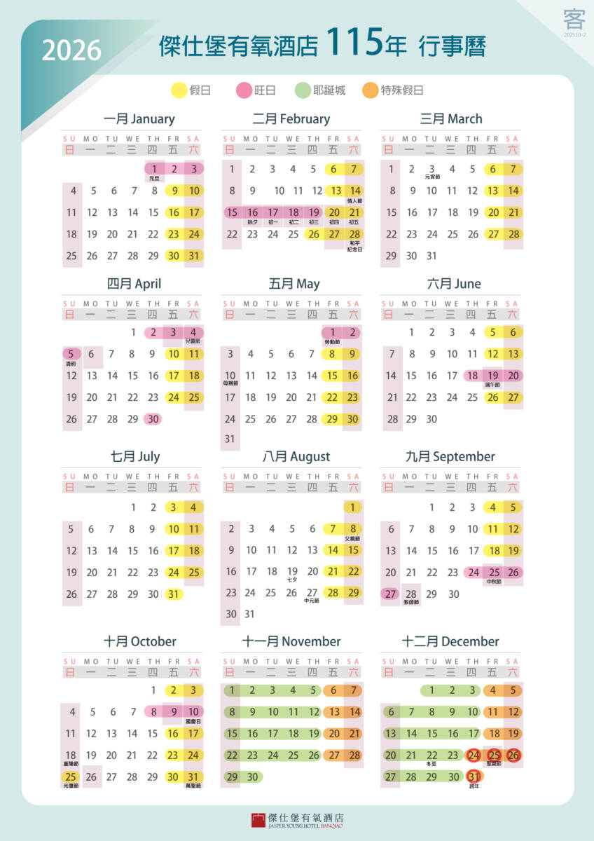 旺日 : 連續假日及前夕,農曆春節至初三。